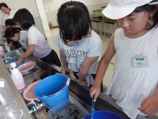 すぐに「いきものランド」(2年生がたくさんの生き物を飼っている水槽コーナー)に行きました。